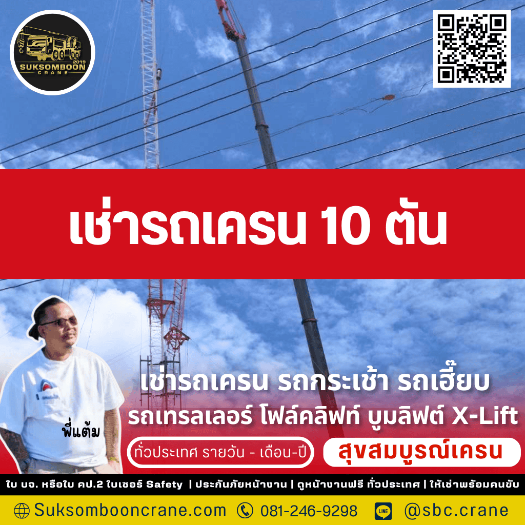 การตัดสินใจ เช่ารถเครน 10 ตัน คือการเลือกความคล่องตัวและประสิทธิภาพสำหรับโครงการของคุณ เลือก พี่แต้ม สุขสมบูรณ์เครน 2019 เพื่อให้คุณได้มากกว่ารถเช่า แต่คือความมั่นใจเต็มร้อยจากทีมงานมืออาชีพที่มีประสบการณ์, ความปลอดภัยสูงสุดด้วยรถที่มีเอกสาร ปจ.2 ครบ, และการดูแลโดยตรงจากพี่แต้ม (เจ้าของ) ที่พร้อมให้คำปรึกษาและแก้ปัญหาหน้างานอย่างรวดเร็วตลอด 24 ชั่วโมง